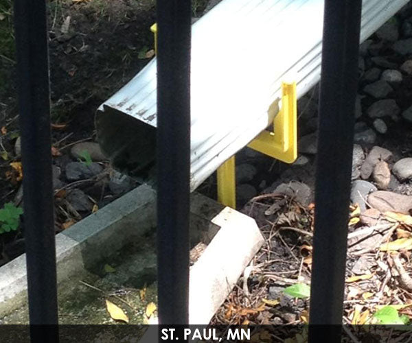 The Downspout Goalpost prevents unsightly dead grass and blockages, along with the benefit of being paintable to match any landscape or home color.